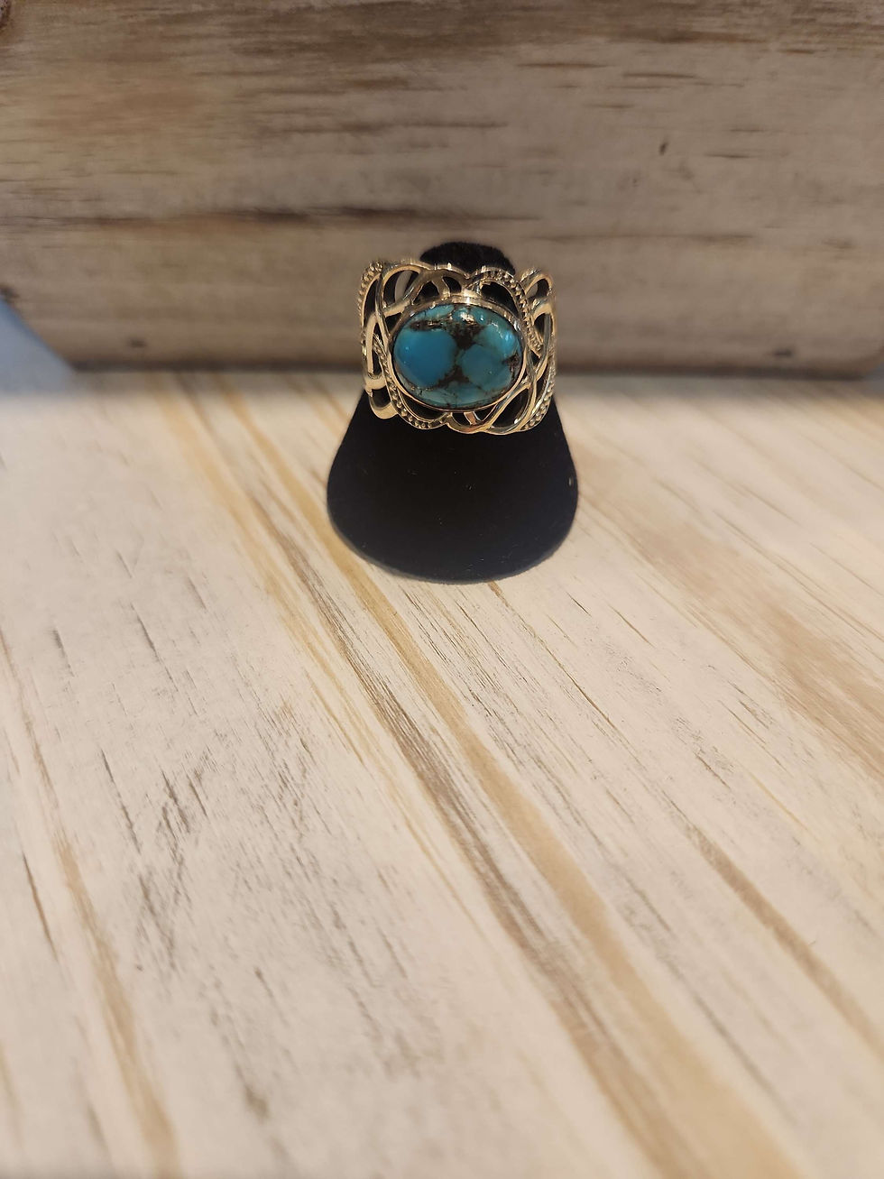 Sterling silver copper turquoise with spiny oyster turquoise ring